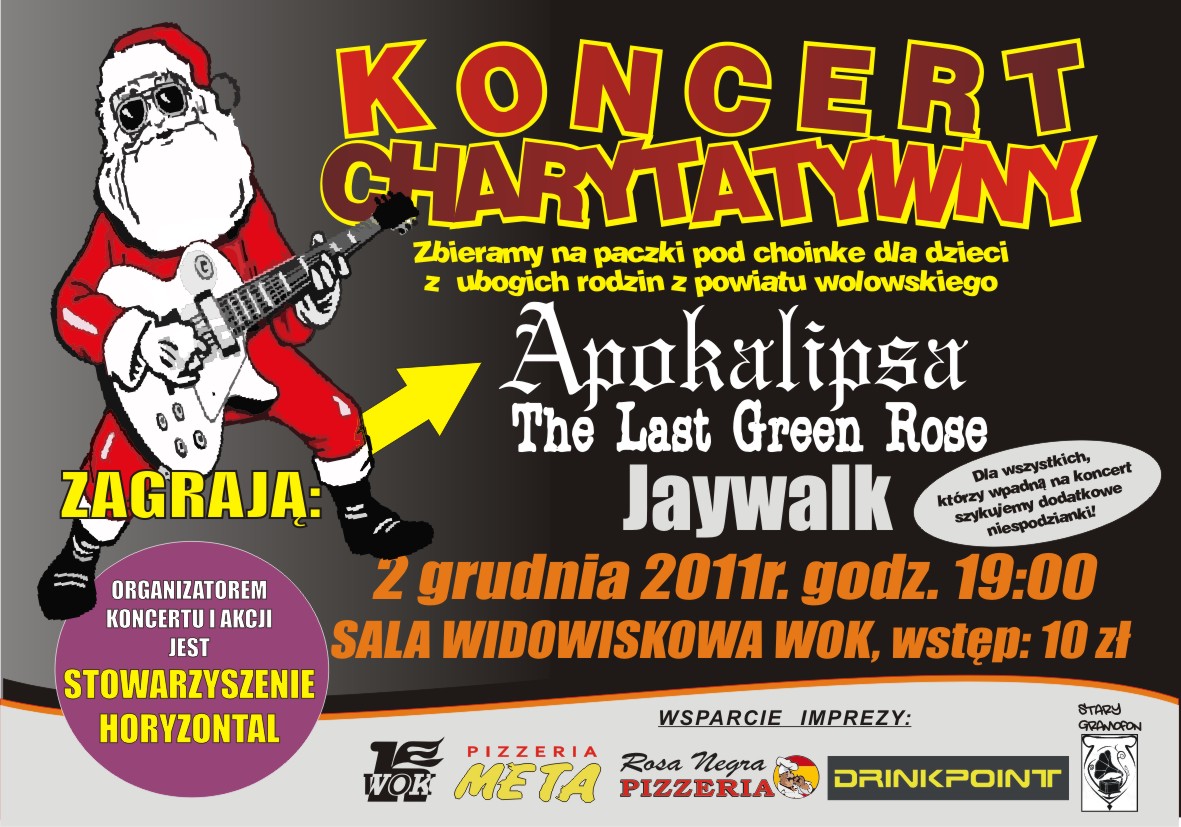 Serdecznie zapraszamy na koncert organizowany przez Stowarzyszenie Horyzontal przy pomocy WOK. Zbieramy na prezenty pod choinkę dla dzieci z ubogich rodzin z terenu powiatu. Serdecznie zapraszamy!
