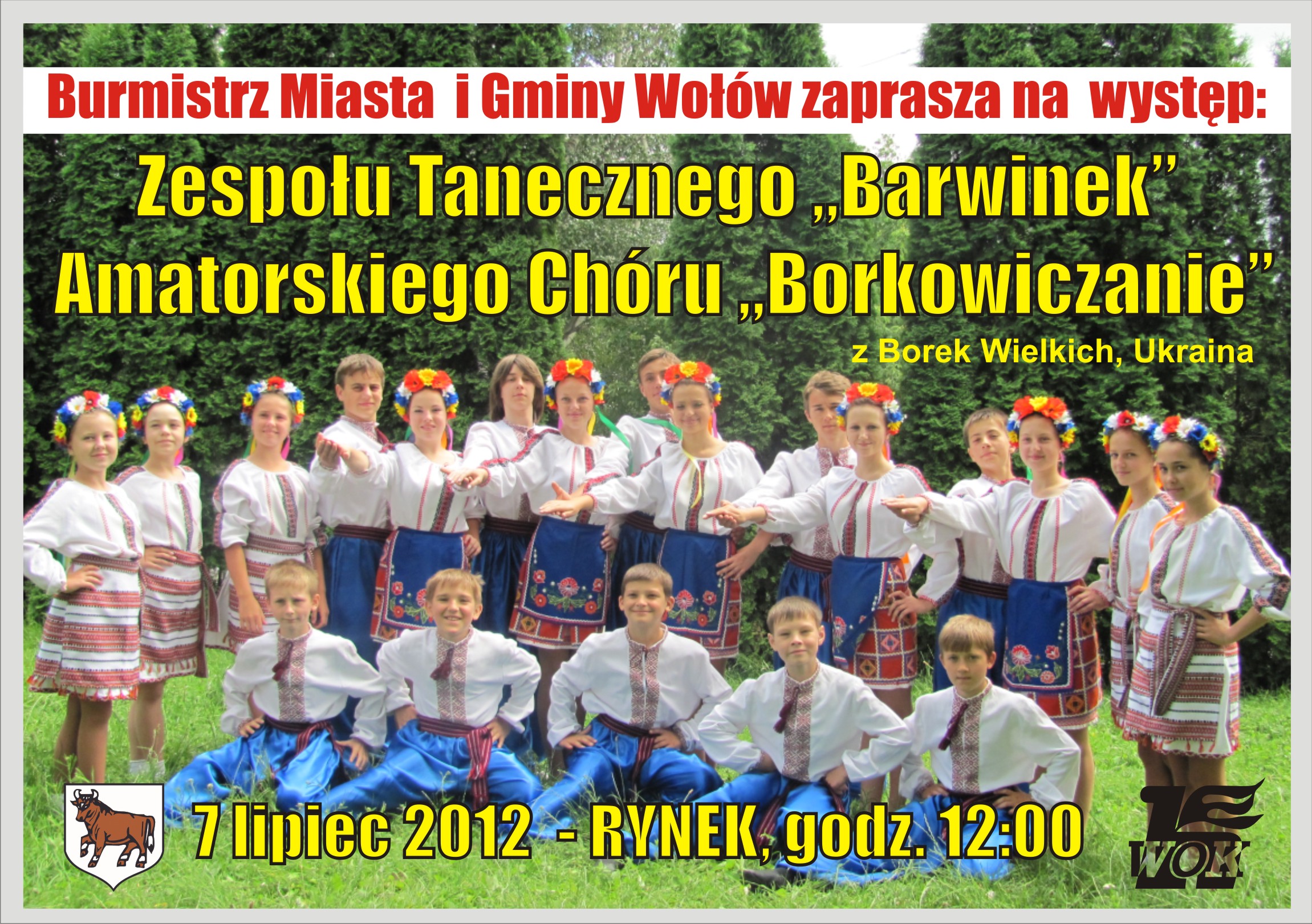 W sobotnie południe zapraszamy na Rynek, gdzie zaprezentują się dwa dziecięce zespoły folklorystyczne z Ukrainy. Będą to: Zespół Taneczny „Barwinek” oraz  Amatorski Chór „Borkowiczanie”.