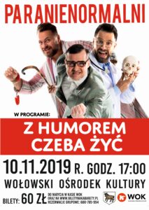 10.11.2019 r. o godzinie 17:00 w Wołowskim Ośrodku Kultury będziemy mieli możliwość zobaczyć kabaret „Paranienormalni” w ich najnowszym programie „Z humorem czeba żyć”.