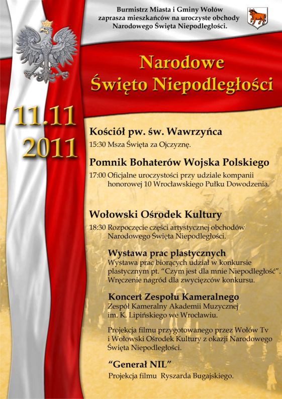 Zapraszamy Państwa na piątkowe obchody Święta Niepodległości. Szczegóły na plakacie.