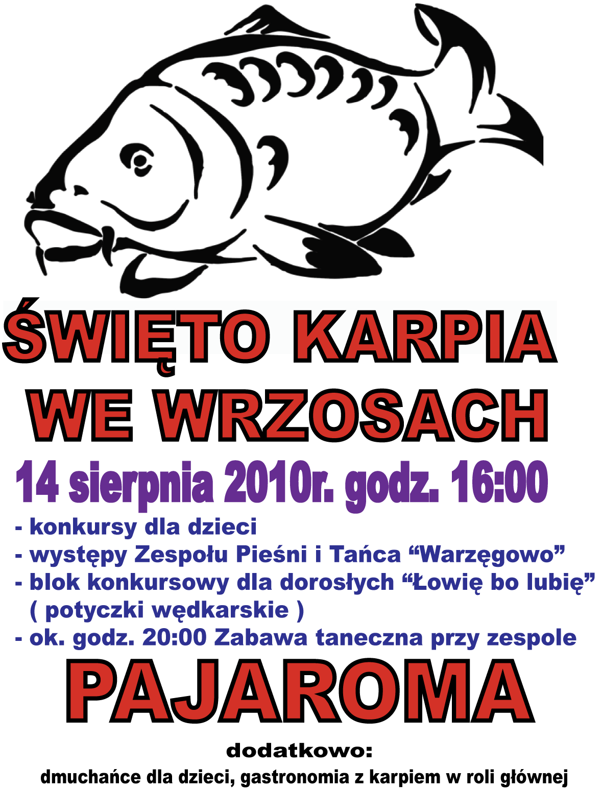 Zapraszamy na Festyn do Wrzosów, który w tym roku odbywać się będzie jako „Święto Karpia”.