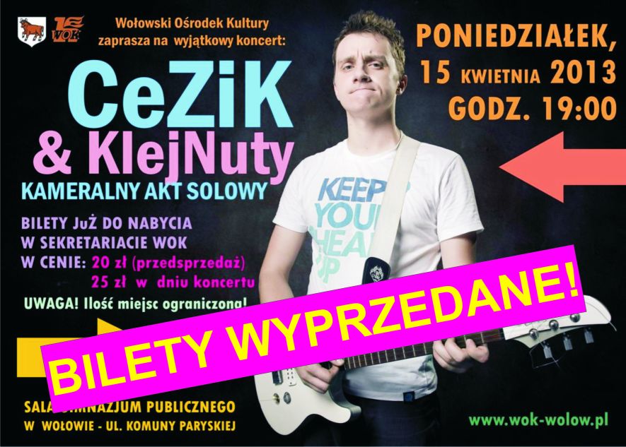Cezik& KlejNuty z kameralnym aktem solowym wystąpi w Wołowie 15 kwietnia ( poniedziałek) w sali Gimnazjum Publicznego przy ul. Komuny Paryskiej w Wołowie.