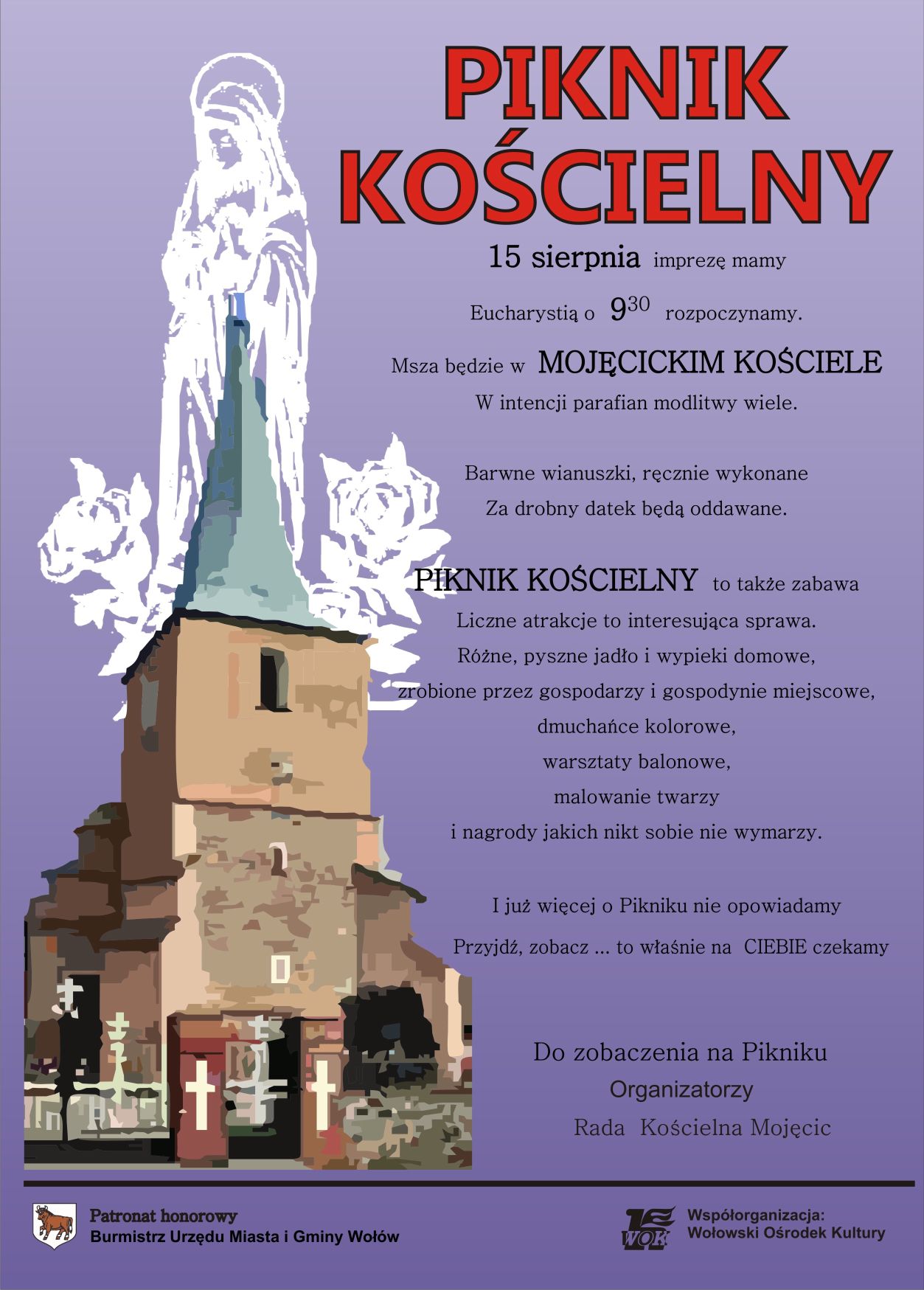 Doroczny   Piknik Kościelny organizowany  przez  Radę Kościelną  odbędzie się  15 sierpnia  w  Mojecicach. jako współorganizatorzy – serdecznie zapraszamy!