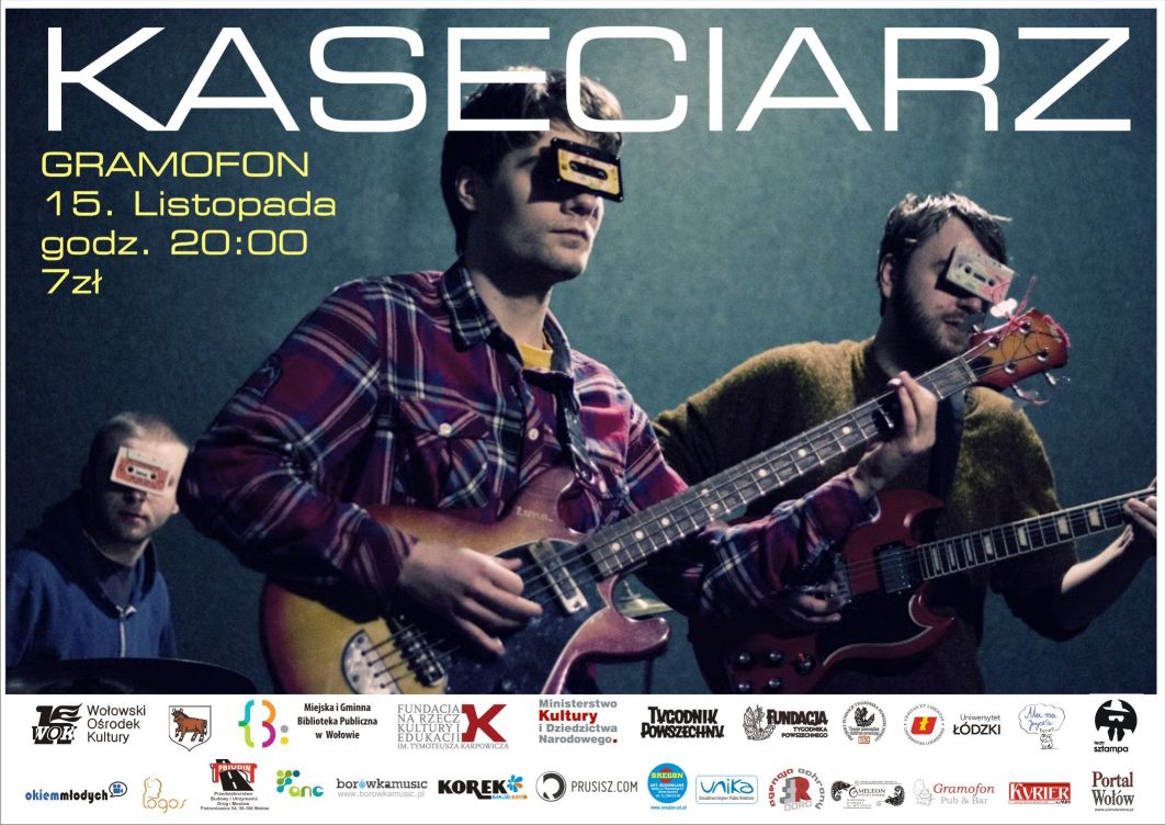 Kaseciarz to projekt powstały w głowie Macieja Nowackiego, który nie jest muzykiem, bo nie ma wymaganego wykształcenia. Projekt ten miał pokazać, że bycie bezrobotnym może być aktywne i twórcze, a nawet wesołe. Efektem tego była debiutancka płyta “Surfin’ Małopolska”, która z pomocą Michała Naroga na bębnach została zrealizowana za darmo w krakowskim Saltromie i miała swoja premierę w listopadzie 2011 roku. Wraz z biegiem czasu Kaseciarz rozrósł się z jednoosobowego projektu do pełnoprawnego zespołu, gdy jego szeregi zasilili Piotr Lewicki na perkusji oraz Łukasz Cegiełka na basie. W takim też składzie grupa grała koncerty, przygotowała muzykę do filmu “Haxan” i nagrała najnowszy album “Motörcycle Rock And Roll”, która jest wynikiem fascynacji serialem “Renegat” i postacią graną przez Lorenzo Lamasa. Muzyka, którą gra Kaseciarz może być określana jako Surf, Garage, lub po prostu Dziadostwo Rock.