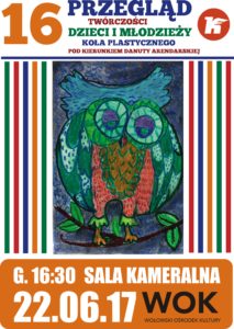 Zapraszamy do zapoznania się z relacją fotograficzną z wernisażu prac z 16-tego Przeglądu Twórczości dzieci i młodzieży kół plastycznych działających przy Wołowskim Ośrodku Kultury. Opiekunem tej sekcji jest Danuta Arendarska, która już od kilkunastu lat uczy i inspiruje młode pokolenia.