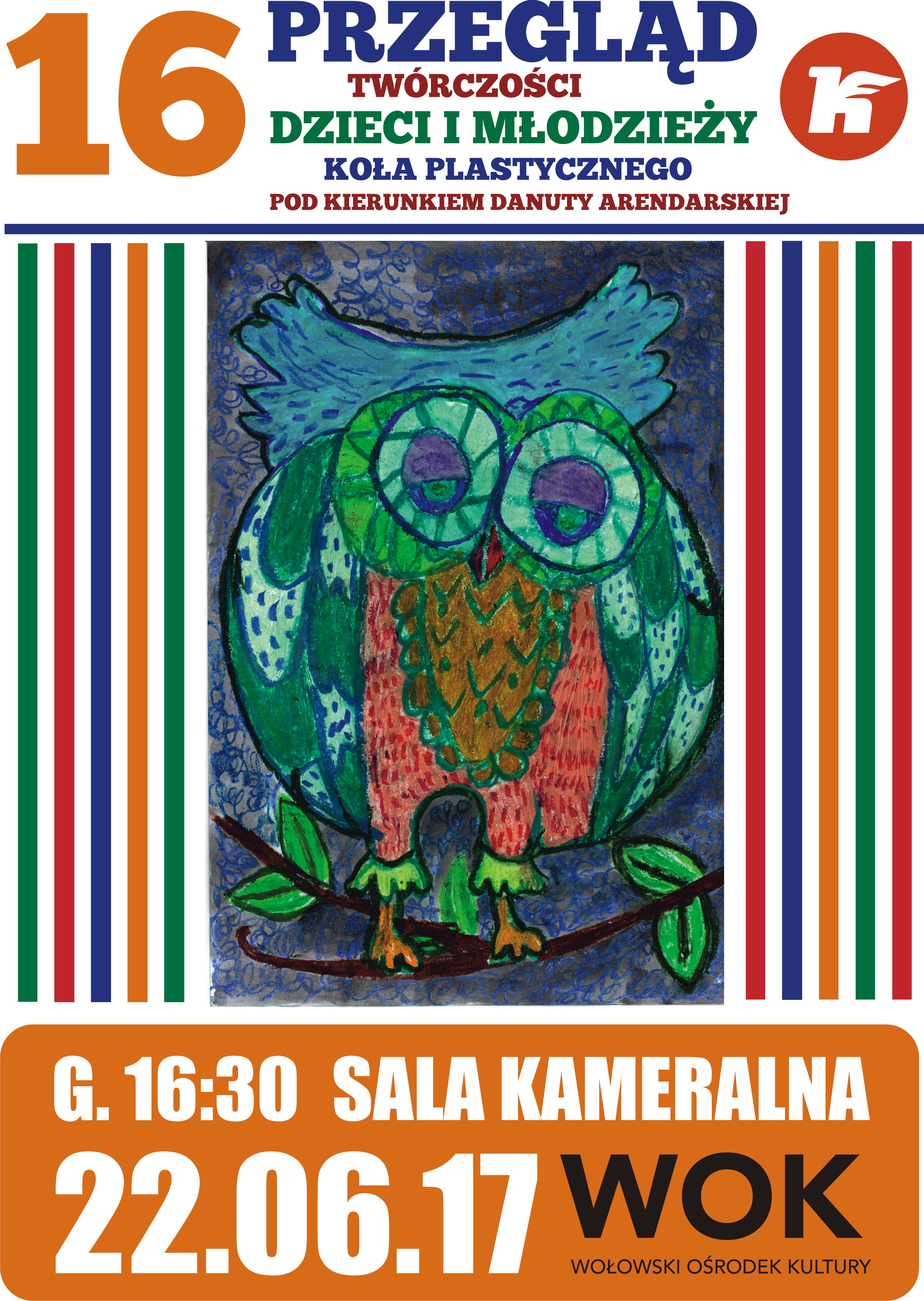 Mamy zaszczyt zaprosić Państwa bardzo serdecznie na 16 już przegląd twórczości dzieci i młodzieży biorącej udział w zajęciach plastycznych Wołowskiego Ośrodka Kultury prowadzonych przez Danutę Arendarską. Wystawa jest swoistym podsumowaniem nabytych umiejętności oraz dotychczasowych osiągnięć uczestników.