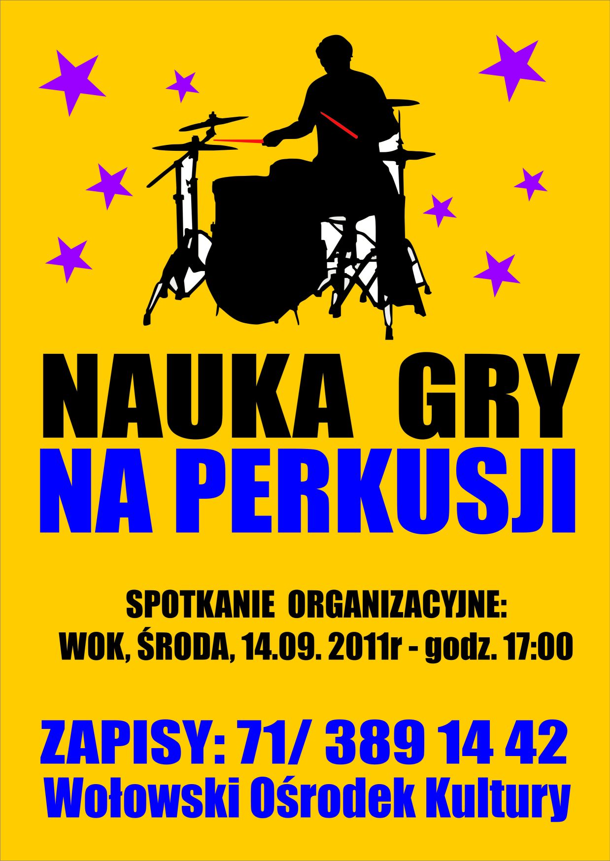Zainteresowanych nauką gry na perkusji zapraszamy na spotkanie organizacyjne w środę, 14 września o godz. 17:00 do WOKu.