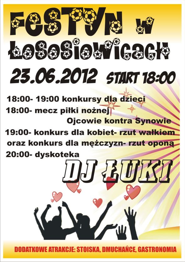 Mieszkańców Łososiowic i całej gminy zapraszamy na kolejny z cyklu festynów – tym razem w Łososiowicach.