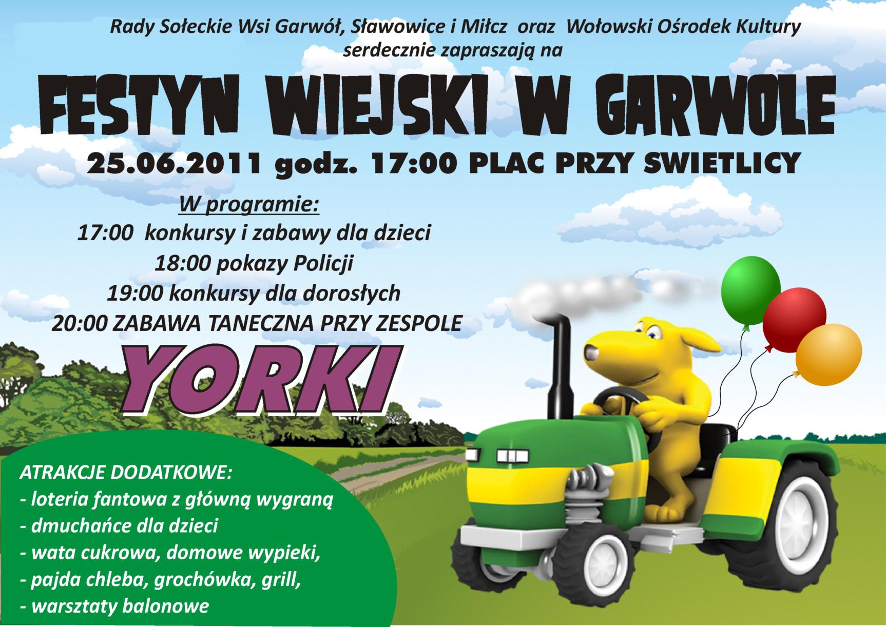 Zapraszamy na festyn wiejski do Garwołu – organizowany wspólnie radami sołeckimi Garwołu, Sławowic i Miłcza.