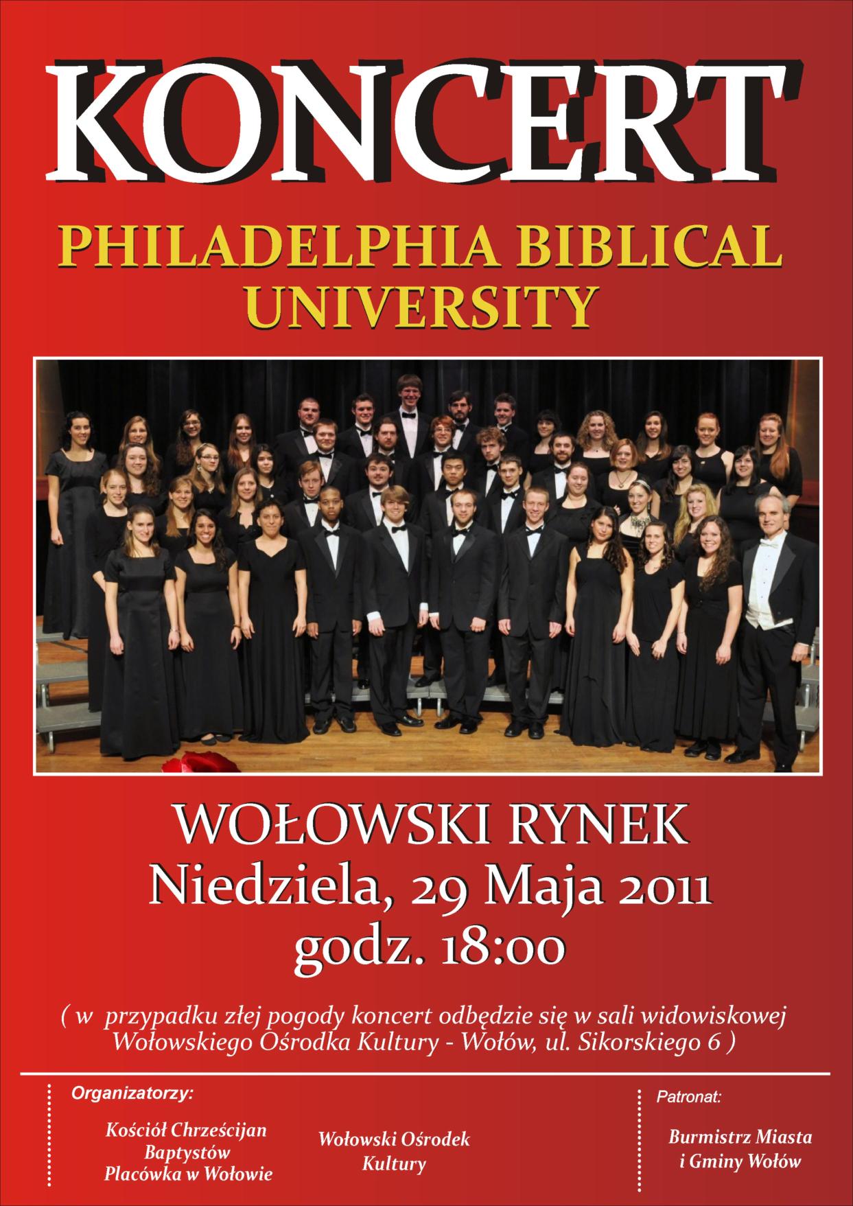 W niedzielę, 29.05. zapraszamy na występ Chóru Philadelphia Biblical University, który odbędzie się o godz. 18.00.