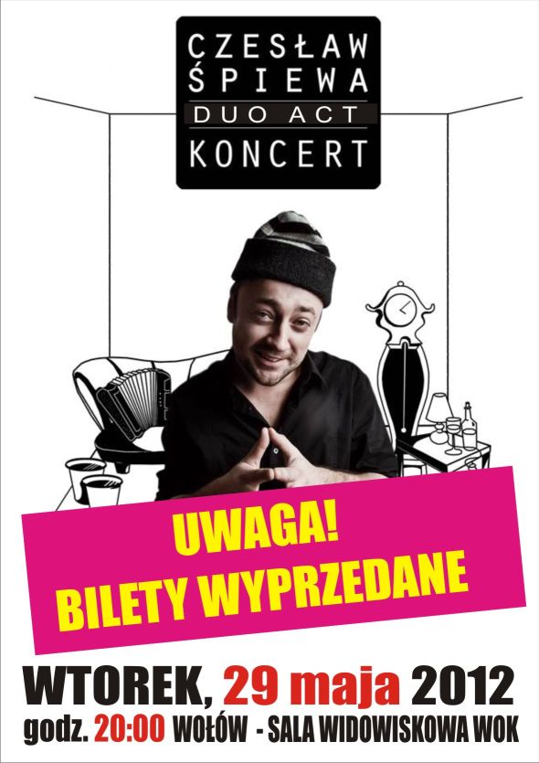 Zanim powstał okolicznościowy projekt Czesław Śpiewa Duo Act, 10 lat temu narodziła się idea koncertów Czesław Śpiewa Solo Act. Wtedy to nieznany nikomu szerzej Czesław Mozil grał i śpiewał gdzie się dało. Podróże po małych miejscowościach potocznie nazywanych „Polską klasy B” miały na celu spopularyzowanie muzyki polsko-duńskiego zespołu Czesław Śpiewa oraz pokazanie Czesława Mozila, szerszej publiczności jako alternatywnego grajka znanego głównie jako juror telewizyjnego show. Gościem specjalnym Solo Actu w Wołowie będzie przyjaciel Czesława Mozila z akademika w Kopenhadze, rodowity Duńczyk – Martin Bennebo, mistrz akordeonu. Martin jest najdłużej grającym muzykiem zespołu Czesław Śpiewa, mającym na swoim koncie płytę „Bennebox”. W ten sposób widzowie wezmą udział w niecodziennym koncercie pod szyldem Czesław Śpiewa Duo Act. Zgodnie z zamysłem artysty, muzyczna wędrówka po antypodach kraju utrzymywała balans pomiędzy telewizyjną popularnością Czesława Mozila a jego artystyczną działalnością. Projekt okazał się dużym sukcesem. Solowe występy duńskiego muzyka cieszą się ogromnym zainteresowaniem zarówno wśród młodzieży jak i starszych miłośników muzyki. Zabawna konferansjerka, nietuzinkowe żarty i intymny klimat małych knajpek i domów kultury stwarzają artyście unikalną możliwość szczególnego kontaktu z wielopokoleniową publicznością. Efektem tych spotkań jest mające status Platynowej płyty DVD „W moim maluteńkim świecie”, które idealnie oddaje atmosferę niecodziennych koncertów spod znaku Czesław Śpiewa Solo Act/Duo Act. Repertuar występów Solo Act/Duo Act zawiera największe przeboje z płyty „Debiut” i „POP” oraz kompozycje z najnowszego albumu „Czesław Śpiewa Miłosza”. Każdy z utworów poprzedzają opowieści o genezie jego powstania oraz autobiograficzne wyznania artysty. Solowe występy Czesława Mozila to także pokaz mistrzowskiej gry na fortepianie i akordeonie. Absolwent Duńskiej Królewskiej Akademii Muzycznej oraz zdeklarowany miłośnik walczyków, z lekkością improwizuje melodie swoich utworów udowadniając, że muzyka klasyczna wcale nie musi być nudna. Wprost przeciwnie, klasyczne inspiracje łączą się tutaj z awangardową fantazją, folkowymi klimatami, punkowym wigorem i poetyckim nastrojem. Dlatego na próżno szukać etykietek i łatwych formułek opisujących solowe koncerty Czesława Mozila. Bo jak zastrzega sam artysta – przepustką do jego malutkiego świata jest umiejętność czucia, a nie rozumienia muzyki. I to się sprawdza.
