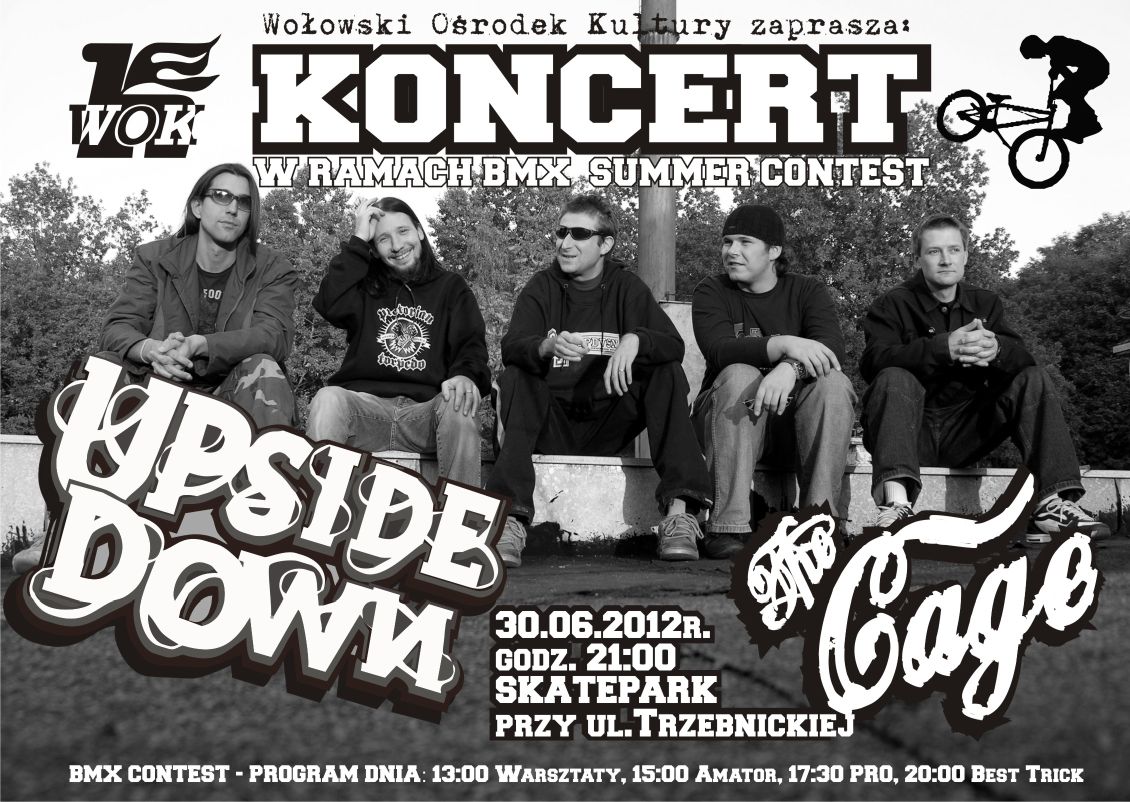 Koncert  bydgoskiego Upside Down oraz  wołowskiego The  Cage   będzie zwieńczeniem  BMX Summer Contest, który odbędzie sie 30 czerwca  na terenie  Skateparku przy ul. Trzebnickiej.