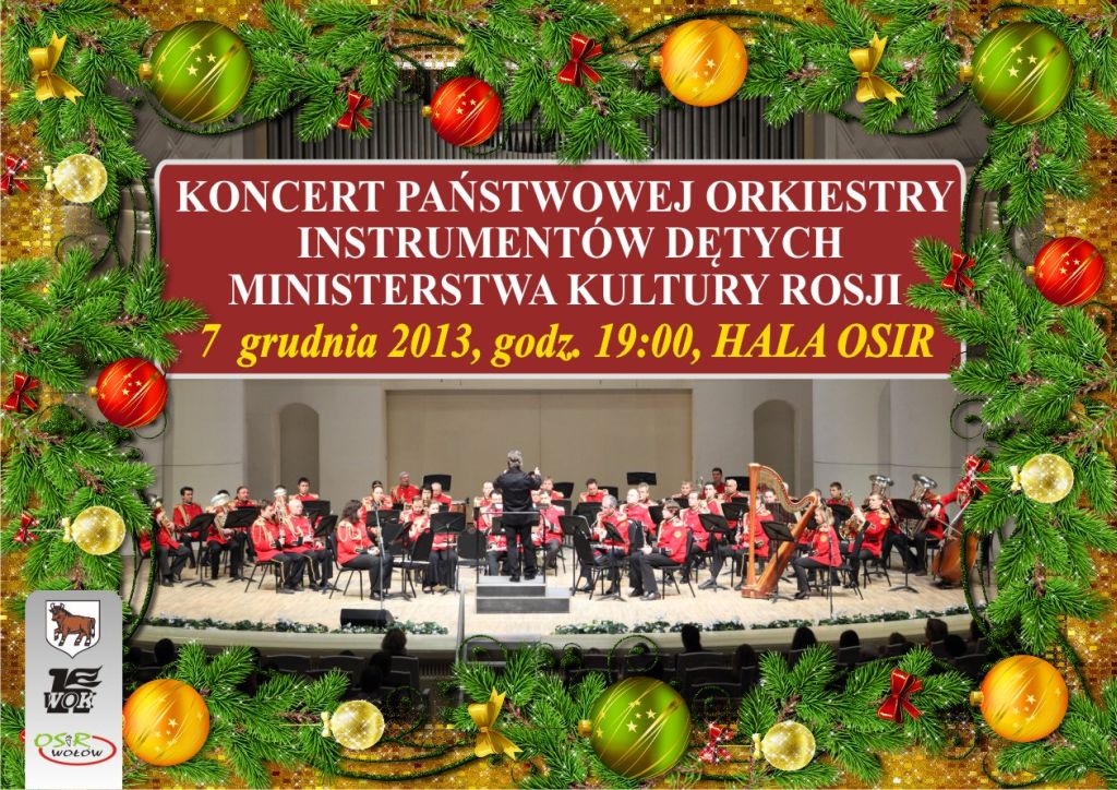 Wspólnie z Urzędem Gminy zapraszamy na wyjątkowy koncert Państwowej Orkiestry Instrumentów Dętych Ministerstwa Kultury Rosji. Odbędzie się on w sobotę, 7 grudnia o godz. 19:00 na hali OSiR przy ul. Panieńskiej.