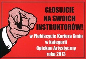 Już trwa tegoroczny plebiscyt na najlepszych artystów i opiekunów artystycznych, podsumowujący dotychczasowy dorobek oraz działalność w roku 2013. Serdecznie zachęcamy ...