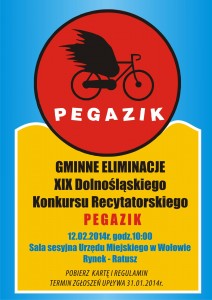12. lutego br. o godz. 10:00 w  sali sesyjnej  Ratusza odbędą się  gminne  eliminacje Dolnośląskiego Konkursu  Recytatorskiego "Pegazik" Karta  zgłoszeniowa ...