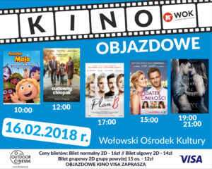 Wołowski Ośrodek Kultury oraz Objazdowe Kino VISA zapraszają na projekcje filmowe, które odbędą się 16 lutego 2018r.  W tym dniu ...