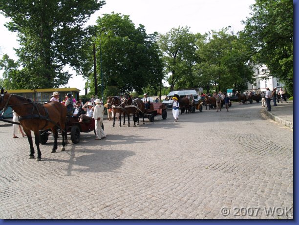 Wyjazd zaprzęgów konnych spod stacji PKP