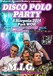 Zapraszamy na kolejny taneczny wieczór w parku WOK. Tym razem bawimy się przy muzyce disco polo.  Zapraszamy w  piątek, od  godz. 20:00 – szczegóły na plakacie.