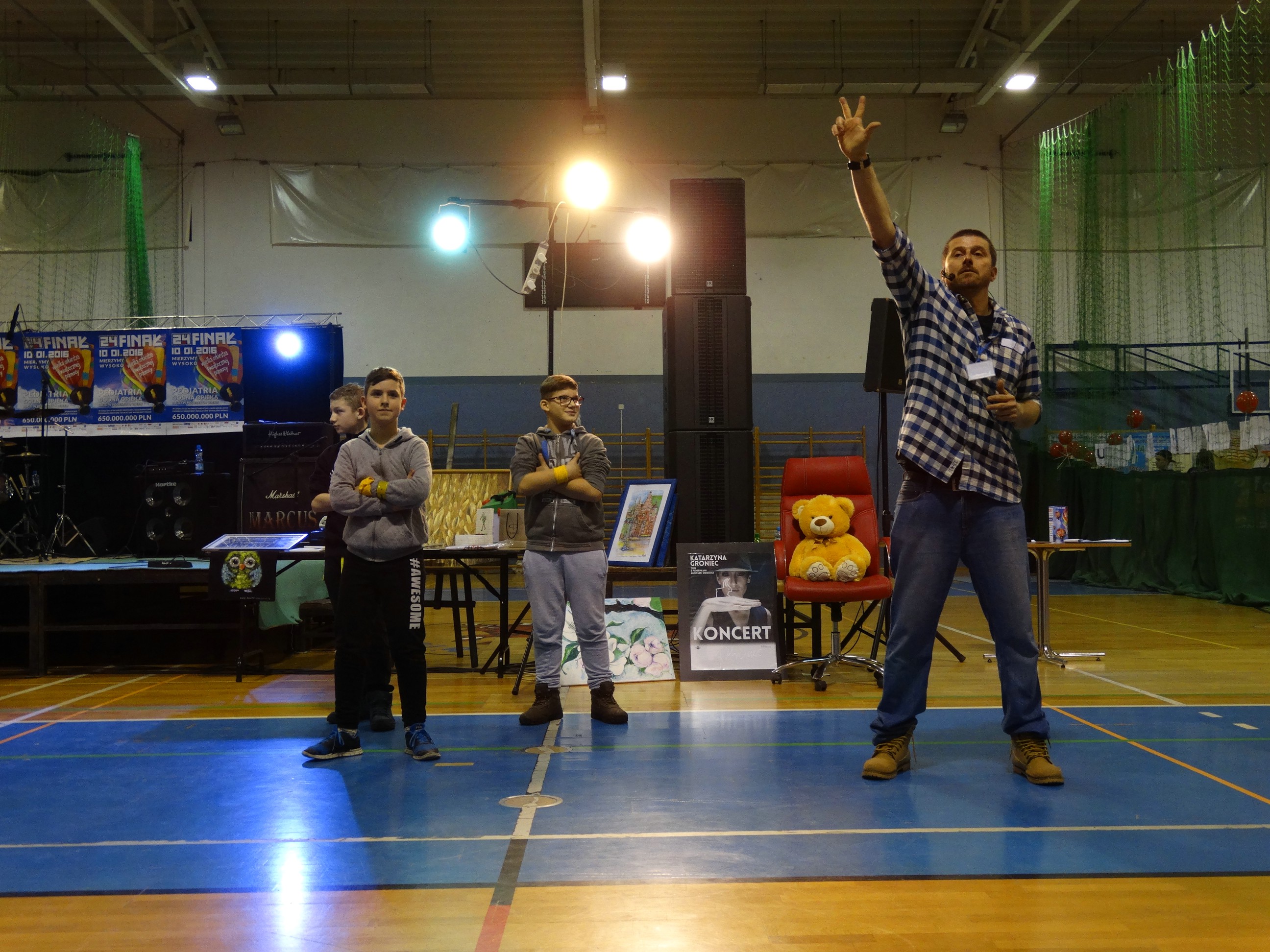 Odwiedzający halę OSiR mieli okazję spróbować swoich sił w przejażdżkach modelami wraz z klubem modelarskim Skorpion. Dzięki uprzejmości PGK mogliśmy również oddać zużyty sprzęt elektroniczny. Podczas licznych aukcji można było wylicytować ciekawe przedmioty oraz vouchery podarowane przez lokalnych przedsiębiorców. Ogromną popularnością cieszyła się aukcja zdjęcia Drużynowych Wicemistrzów Polski na Żużlu WTS Sparty Wrocław wraz z autografami całej drużyny m.in. Indywidualnego Mistrza Świata Taia Woffindena. Szczęśliwą posiadaczką stała się Pani Ewa z Wołowa, wylicytowała przedmiot za cenę 210zł. W sumie wszystkich aukcji uzbieraliśmy kwotę 3 tysięcy złotych.