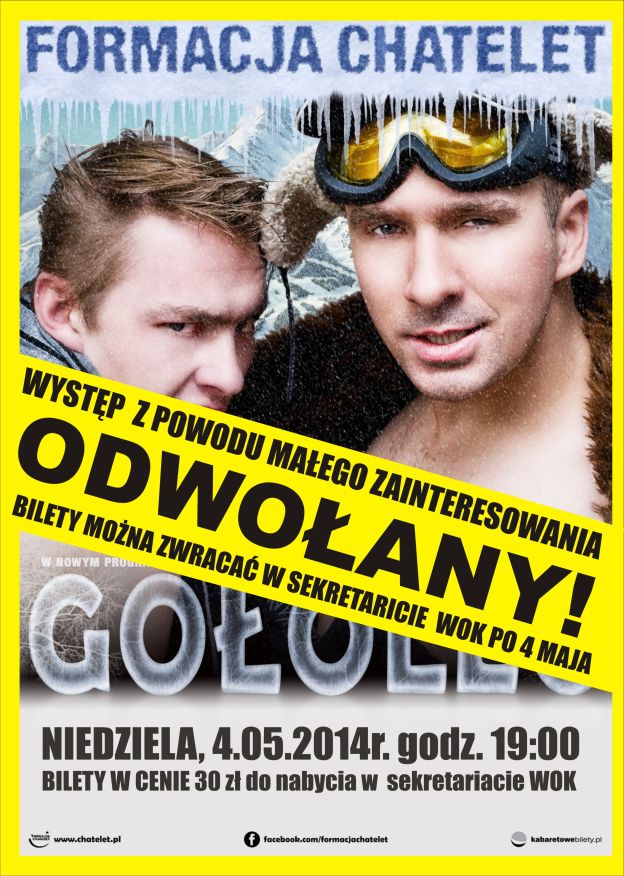 „Formacja Chatelet. Oderwij się z nami od rzeczywistości!” – to hasło promujące najnowszy program zespołu. A więc Oderwij się i „Gołoleć”!