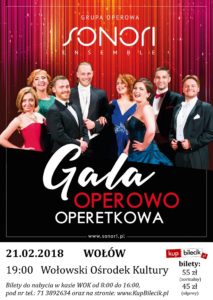 Wołowski Ośrodek Kultury zaprasza na wyjątkową Galę Operowo-Operetkową w wykonaniu znakomitych, utalentowanych artystów Grupy Operowej Sonori Ensemble.