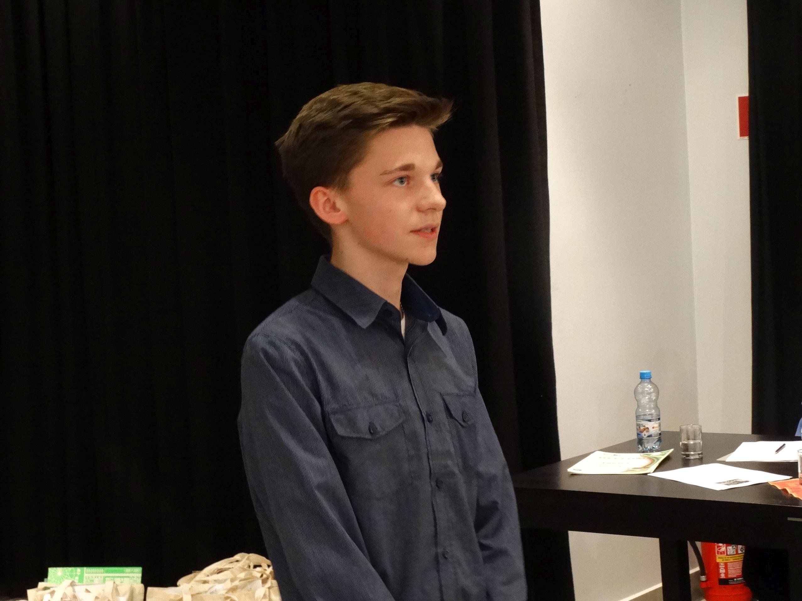 III. miejsce – Patryk Jasiński, kl. II GP nr 1 w Wołowie, wiersz pt. „Miejmy nadzieję”, autor: Adam Asnyk, proza pt. „Grom”, autor: Dean R. Koontz.