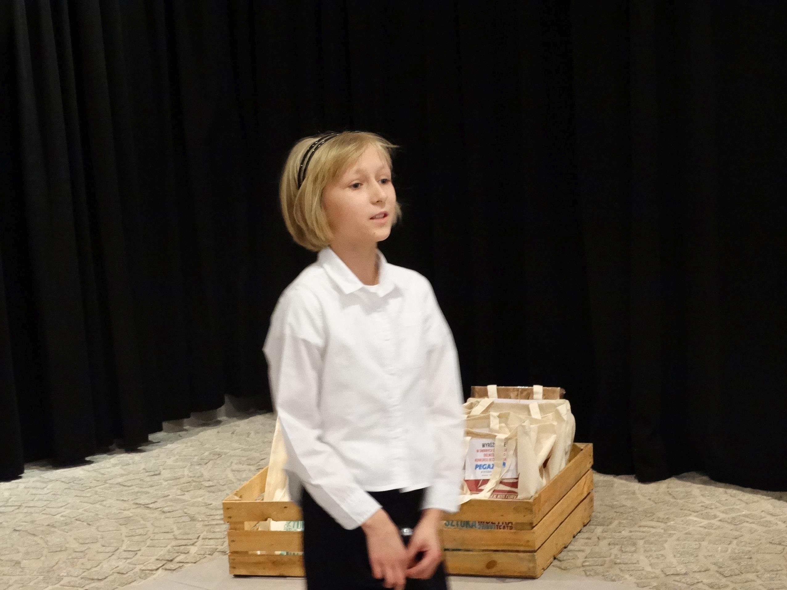 II. miejsce – Aleksandra Przystupska, kl. III GP nr 2 w Wołowie, wiersz pt. „Bez”, autor: Tadeusz Różewicz, proza pt. „Jestem za gruba”, autor: Jacqueline Wilson.