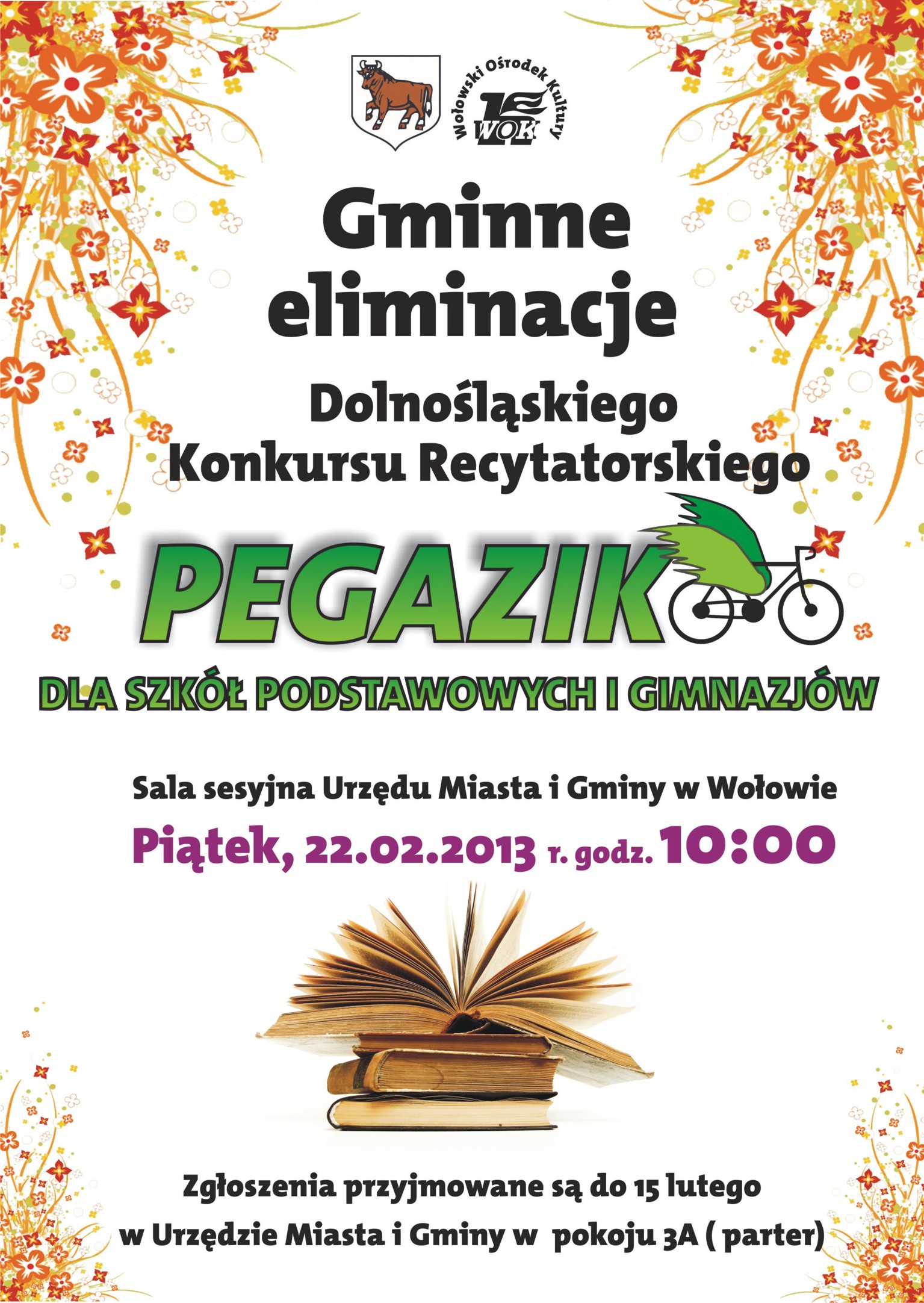 Coroczne eliminacje konkursu recytatorskiego na szczeblu gminnym odbędą się w tym roku w sali sesyjnej wołowskiego ratusza w piątek, 22 lutego o godz. 10:00.
