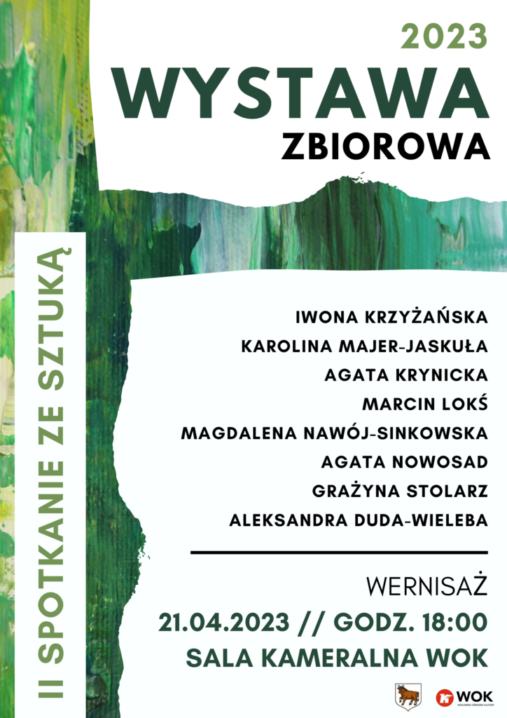 Wernisaż odbędzie się 21.04.2023r. (piątek) o godz. 18:00 w sali kameralnej Wołowskiego Ośrodka Kultury.