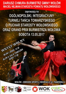 Organizatorami Ogólnopolskiego Integracyjnego Turnieju Tańca Towarzyskiego o Grand Prix Burmistrza Wołowa oraz Puchar Starosty Wołowskiego są: KTT „Impuls”, Wołowski Ośrodek Kultury, Gmina Wołów, Powiat Wołowski oraz OSiR Wołów. Wszystkich miłośników tańca serdecznie zapraszamy w sobotę 13 maja od godziny 12:30.