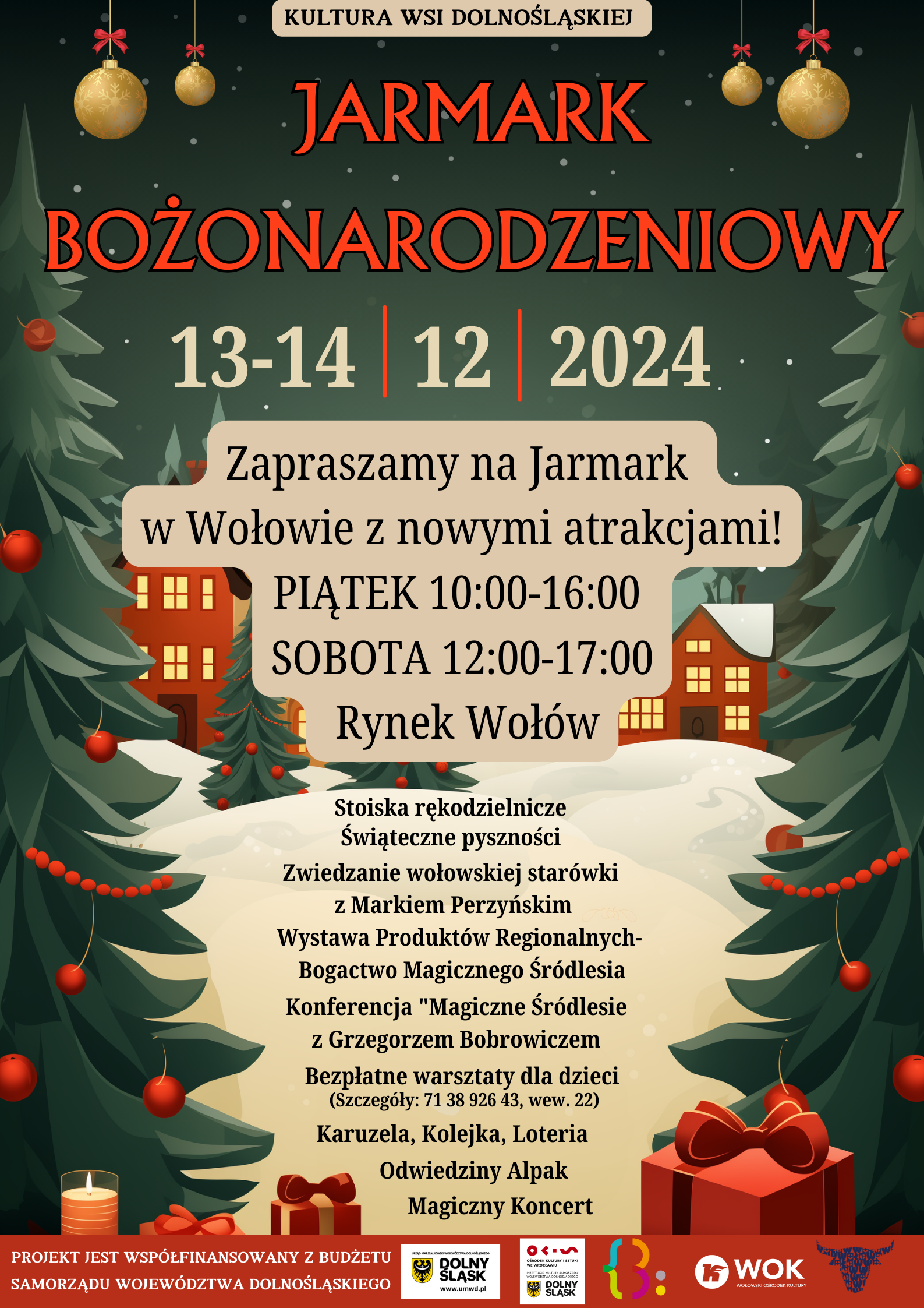 Zapraszamy na tegoroczną edycję Jarmarku Bożonarodzeniowego w dniach 13 oraz 14 grudnia na wołowski Rynek!