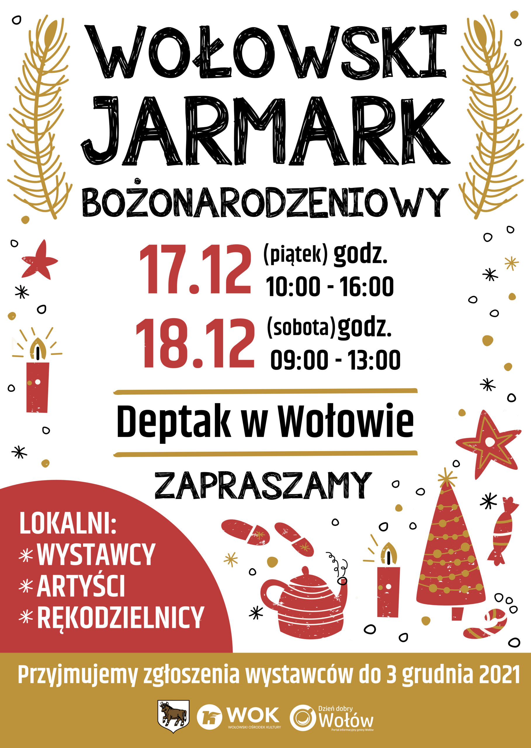 Po raz kolejny zapraszamy do udziału w tegorocznym Jarmarku Bożonarodzeniowym, który tradycyjnie odbędzie się na wołowskim deptaku w dn. 17-18.12.2021r.