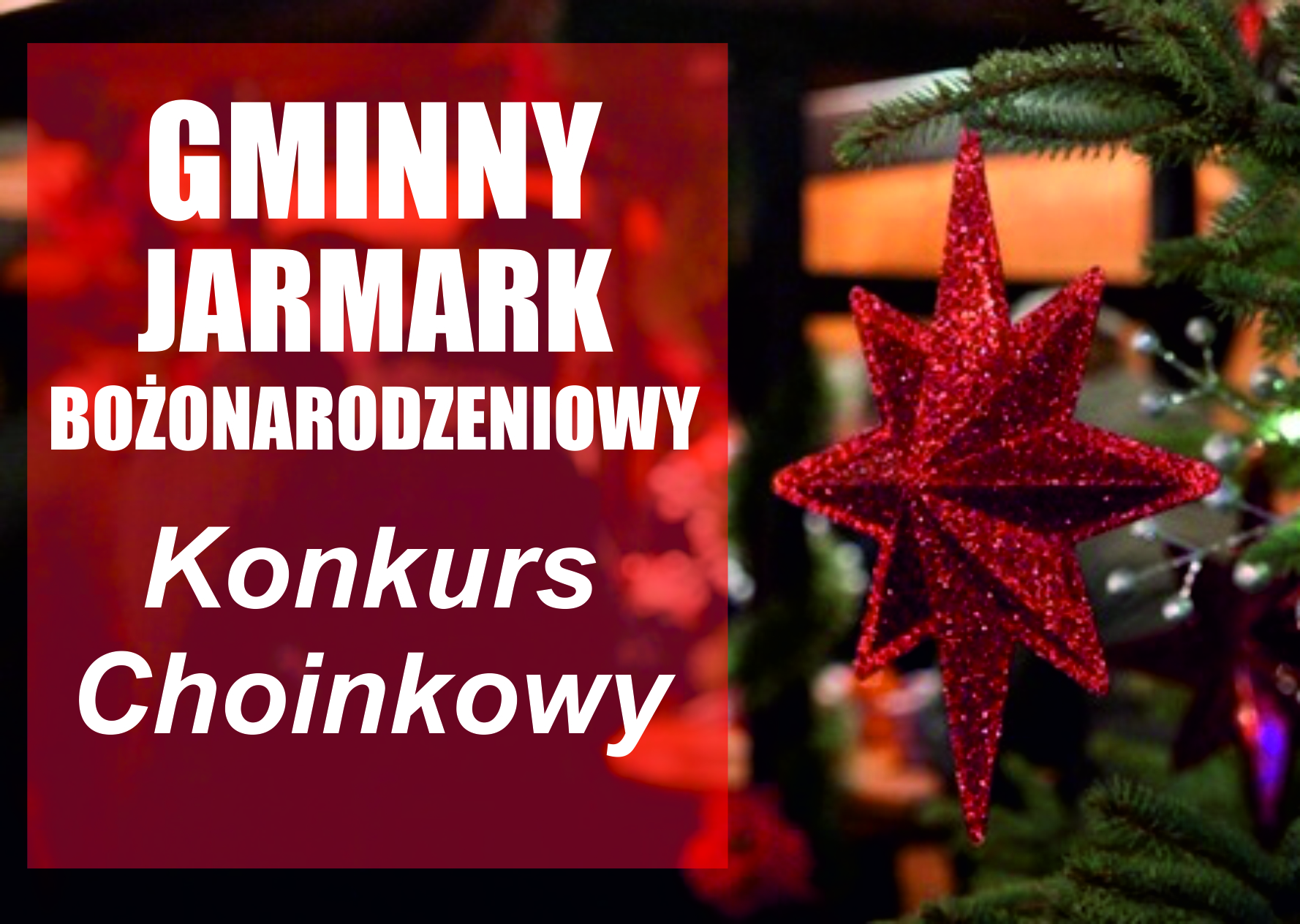 08.12.2017r., (piątek), w godzinach 10:00 – 14:00 Wołowski Ośrodek Kultury zaprasza wszystkie chętne przedszkola, szkoły podstawowe i średnie do udziału w Konkursie Choinkowym. Rozstrzygnięcie konkursu nastąpi podczas Gminnego Jarmarku Bożonarodzeniowego w dniu 09.12.2017r. o godz. 15:00 podczas oficjalnego otwarcia. W tym dniu WOK zaplanował również szereg rozmaitych atrakcji m.in.: wizytę Świętego Mikołaja, animacje dla najmłodszych, przegląd kolęd, występ kuglarzy oraz koncert kolęd.