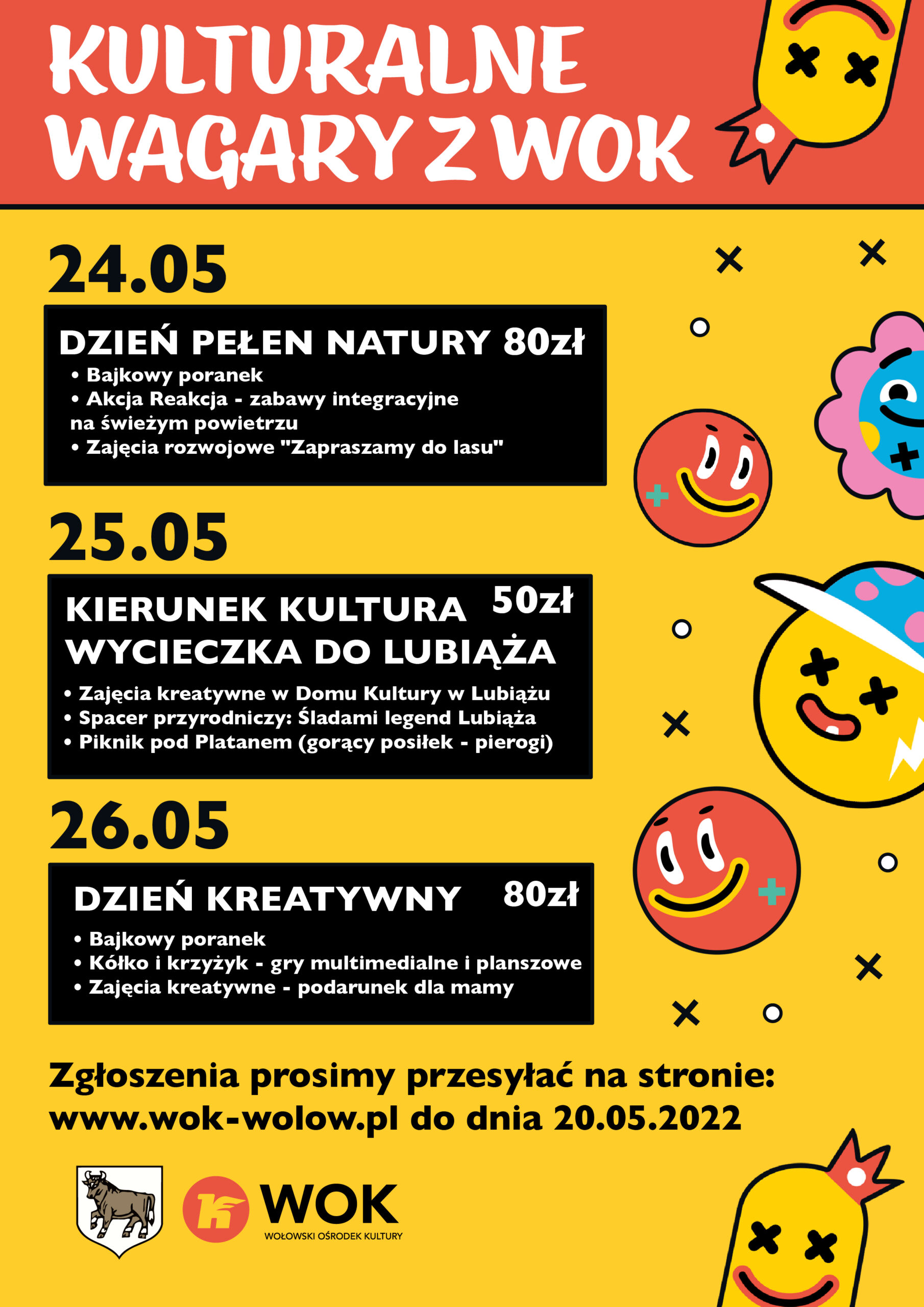 Zapraszamy serdecznie na „Kulturalne wagary” z Wołowskim Ośrodkiem Kultury w trakcie przerwy szkolnej w dniach 24-26.05.2022r. Podczas, gdy nasi ósmoklasiści będą pisać egzaminy (trzymamy kciuki!) – my będziemy wagarować – wesoło, aktywnie i kulturalnie.
