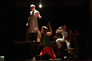 W środę (9.12) mieszkańcy Wołowa mieli okazję zobaczyć spektakl na własne oczy. Na scenie Wołowskiego Ośrodka Kultury stanął pokój z leningradzkiego bloku, w którym zgraja pijanych muzyków gra i śpiewa, zgłębiając filozofię nie picia wódki przez picie.