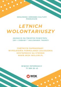 Wołowski Ośrodek Kultury poszukuje wolontariuszy do pomocy przy organizowanych w czasie wakacji imprezach kulturalnych, m.in. animacjach w Parku WOK.