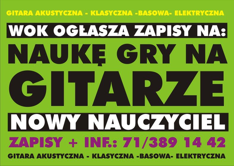 Zachęcamy wszystkich zainteresowanych nauką gry na gitarze akustycznej, klasycznej, elektrycznej i basowej na zapisy w Wołowskim Ośrodku Kultury osobiście lub pod numerem 71/ 389 14 42. Trwa nowy nabór uczniów. Zajęcia będzie prowadził pan Michał Matczak.