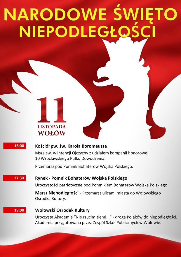 Poniżej przedstawiamy Państwu program obchodów Narodowego Święta Niepodległości.
