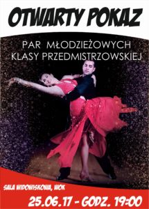 W najbliższą niedzielę, 25.06.17r. zapraszamy na otwarty pokaz par młodzieżowych klasy przedmistrzowskiej.