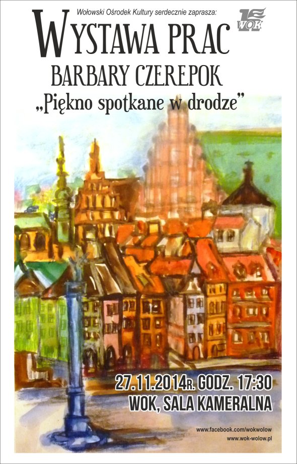 W czwartek, 27.11. 2014r. o godz. 17:30 zapraszamy do sali kameralnej WOK na otwarcie wystawy Pani Barbary Czerepok ” Piękno spotkane w drodze”.