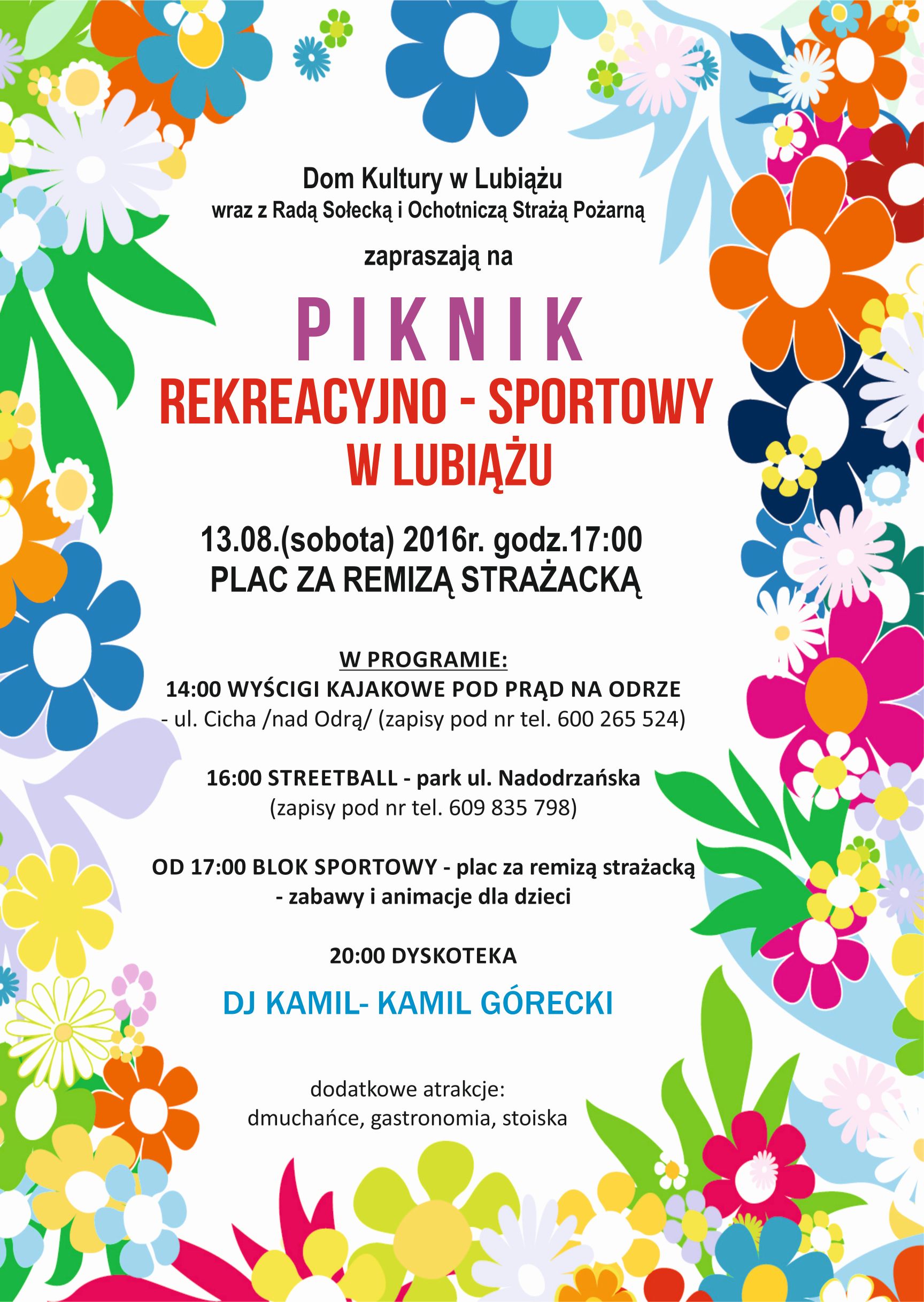 Dom Kultury w Lubiążu wraz z Radą Sołecką i Ochotniczą Strażą Pożarną zapraszają na Piknik Rekreacyjno-Sportowy.