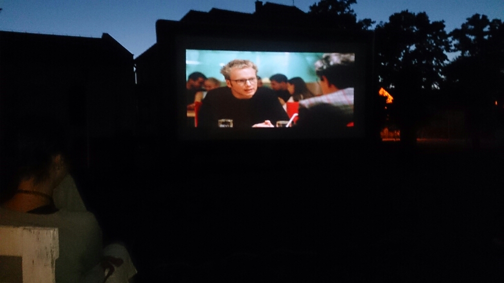 W ostatni piątek ponad 70 osób odwiedziło park przy Wołowskim Ośrodku Kultury, żeby wspólnie obejrzeć kultową polską komedię „Chłopaki nie płaczą”. Wszyscy dobrze się bawili podczas seansu siedząc na kocach i ławeczkach.