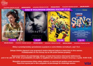 „Sztuka kochania. Historia Michaliny Wisłockiej”- godz. 17:00 Komedia, dramat, biograficzny, ograniczenia wiekowe: od 15 lat, cena biletu: 16 zł normalny, 14 zł ulgowy (szkolny, studencki, seniora, rodzinny)