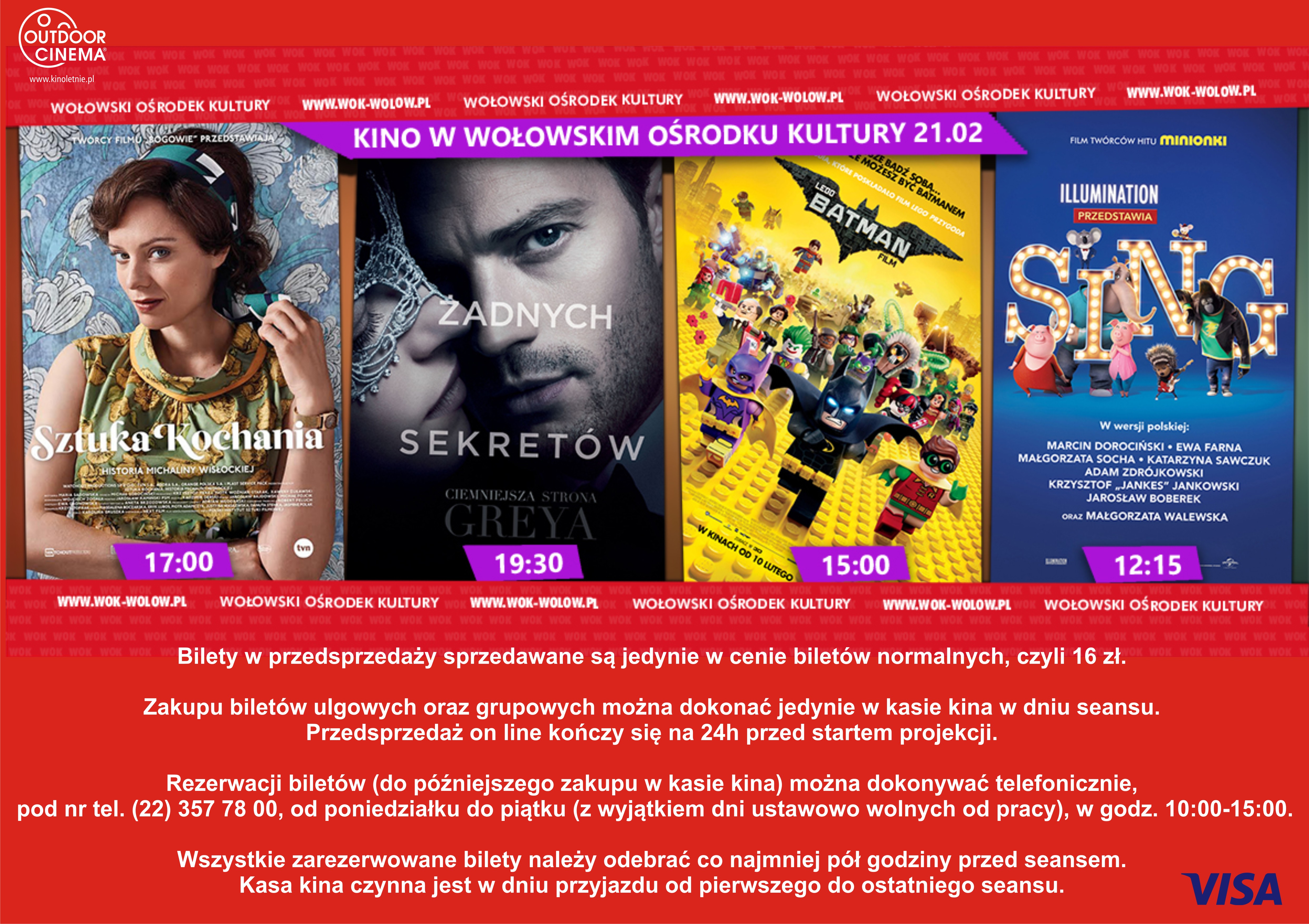 21 lutego ponownie zawita do Wołowa kino objazdowe „Outdoor Cinema”, które tym razem zaprezentuje Państwu cztery najnowsze filmowe hity– „Lego Batman”, „Sing” , „Sztuka kochania. Historia Michaliny Wisłockiej” oraz „Ciemniejsza Strona Grey’a”.