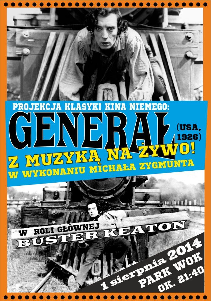 Zapraszamy w piątek 1 sierpnia do parku WOK na projekcję klasyki kina niemego filmu „Generał” z 1926 roku. Dodatkowa atrakcją będzie podkład muzyczny do filmu grany na żywo przez Michała Zygmunta.