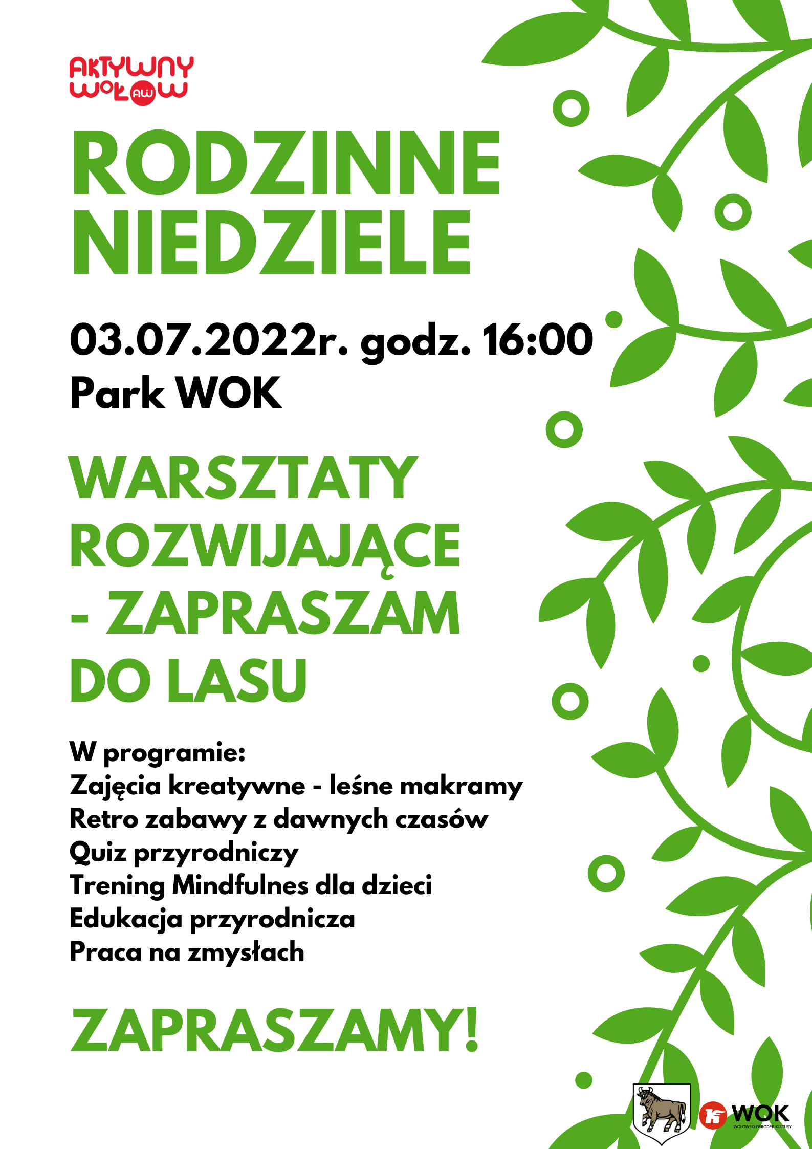 03.07.2022 – Warsztaty rozwijające „Zapraszam do Lasu”, godz. 16.00 Park WOK