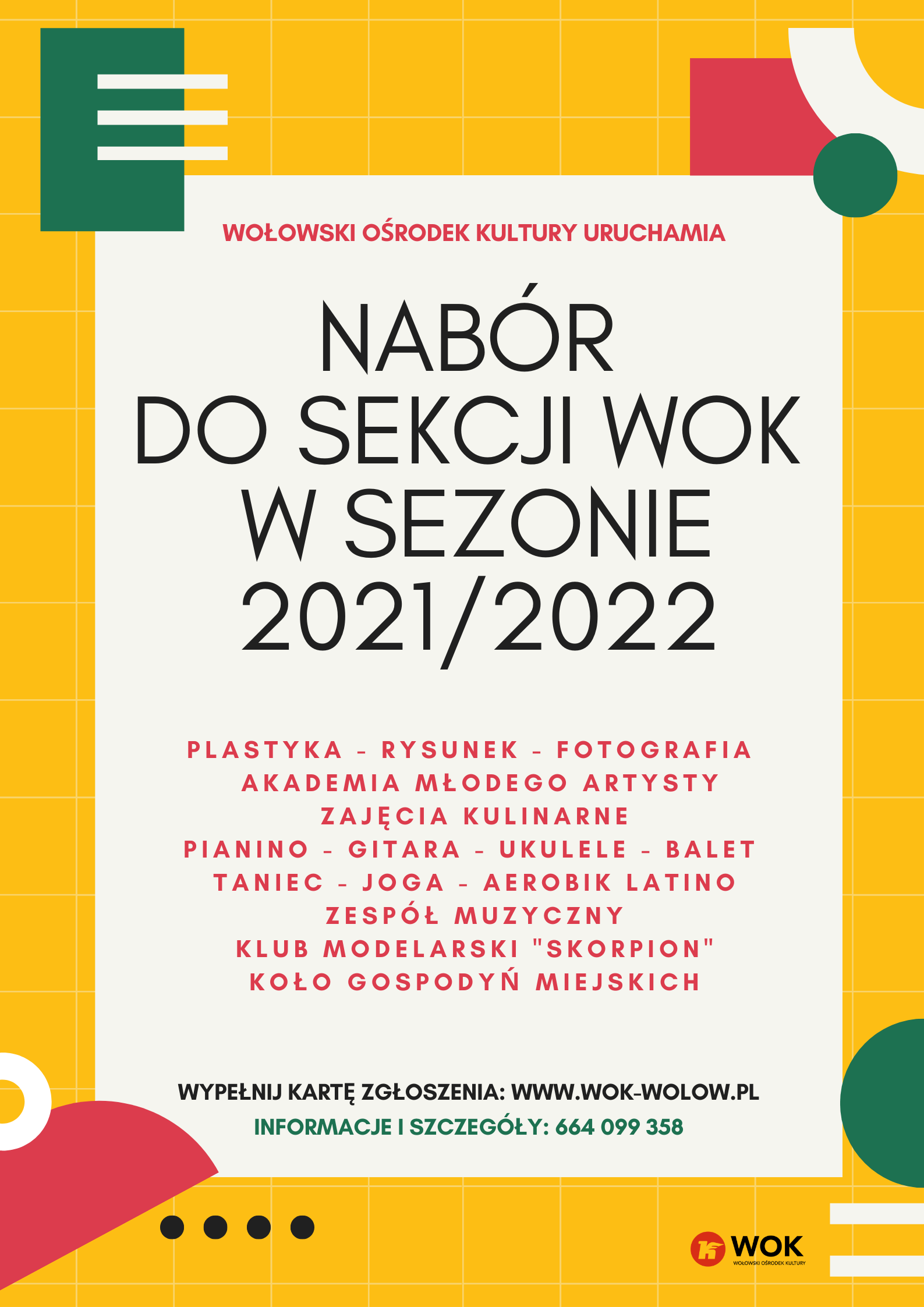 Zachęcamy do udziału w sekcjach prowadzonych przez Wołowski Ośrodek Kultury w sezonie 2021/2022!