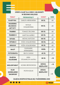 Aktualna oferta zajęć dla dzieci i młodzieży: