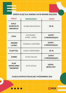 Aktualna oferta zajęć dla dorosłych w sezonie 2021/2022: