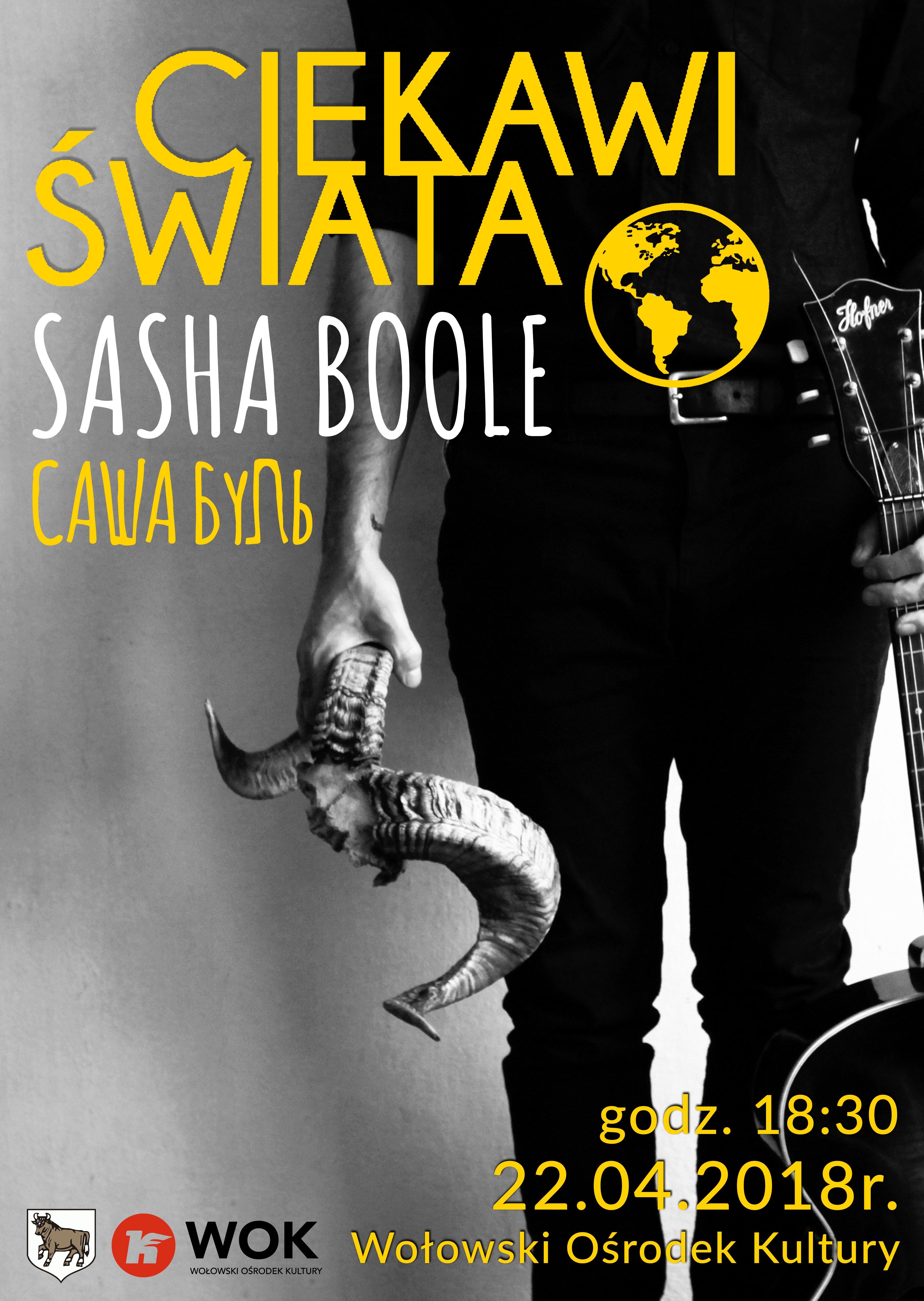 W niedzielę, 22 kwietnia, w Wołowskim Ośrodku Kultury odbyło się kolejne wydarzenie z cyklu Ciekawi Świata. Gościem spotkania był ukraiński muzyk Sasha Boole, który zabrał nas w niezwykłą, muzyczną podróż. Tym razem mieliśmy okazję wysłuchać opowieści o Ukrainie, o życiu artysty podróżnika, ale i nie tylko. Była to niezwykle udana muzyczna uczta, która na długo zostanie zapamiętana przez licznie zgromadzoną publiczność.